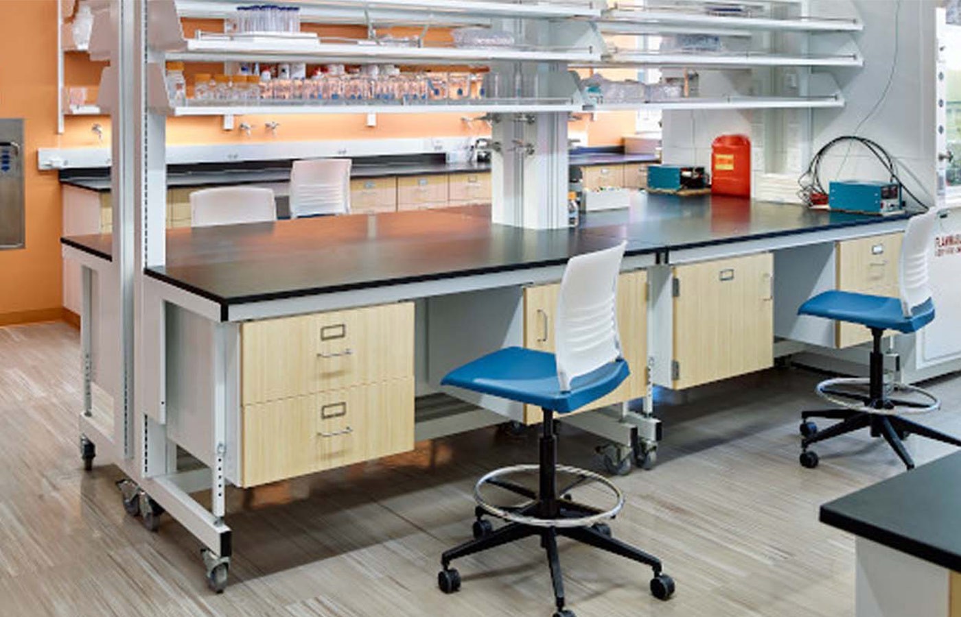 To accommodate the needs of any space, Strive task stools are available with cantilever arms to support users.