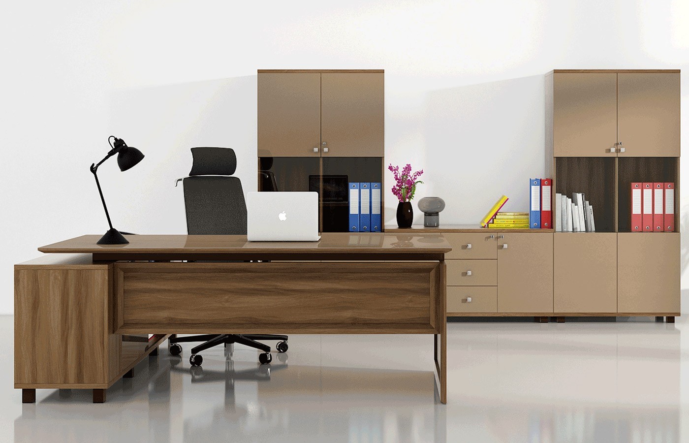 Chief presents itself in an exquisite Glass and Membrane finish, creating a visually captivating centerpiece which elevates the ambiance of any workspace it graces.