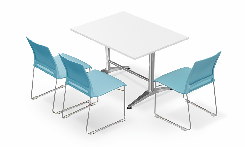 Luncheon tables are available with either stainless steel or powder-coated understructures and come in a variety of tabletop colors and finishes. Mounted on levellers, these tables boast a sturdy and stable design.