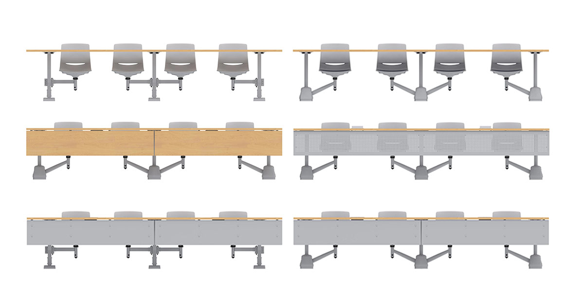 Adaptable to various teaching styles, University seating supports a wide range of space requirements while enhancing student engagement. The floor-mounted swivel seats and large, continuous worksurfaces encourage movement and collaboration. Power module options provide accessible charging to eliminate distractions, creating a more efficient and productive learning space.