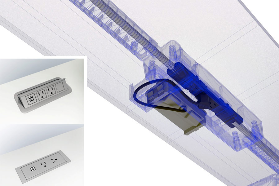 - Power/USB options include Dean In-Surface, Nacre Pop-Up and Dubbel Undersurface – all modules feature two simplex receptacles, one USB-A and one USB-C port
