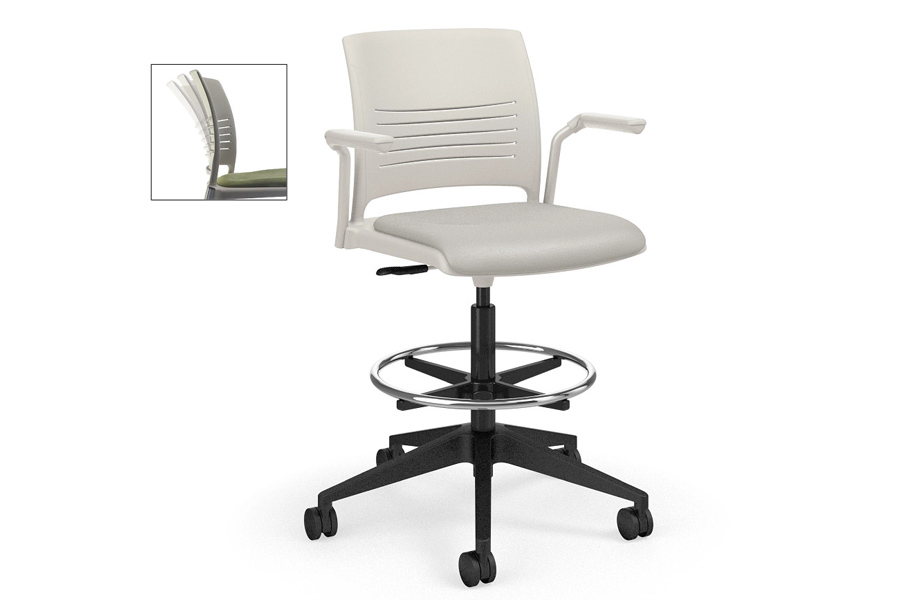From dynamic classrooms to refined workspaces, Strive task stools adapt seamlessly to any environment. Supporting ergonomic comfort, the design features a slatted flex back and contoured curves. Cantilever arms and upholstered seats and backs provide functional versatility.